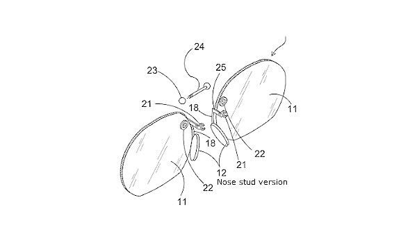 Очки, которые крепятся с помощью пирсинга, патент выдан в 2003 году