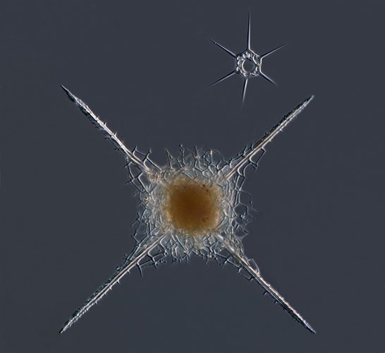 Радиолярия из Антарктики, этот микроскопический паразитирующий организм крепится на свою жертву с помощью ложноножек.