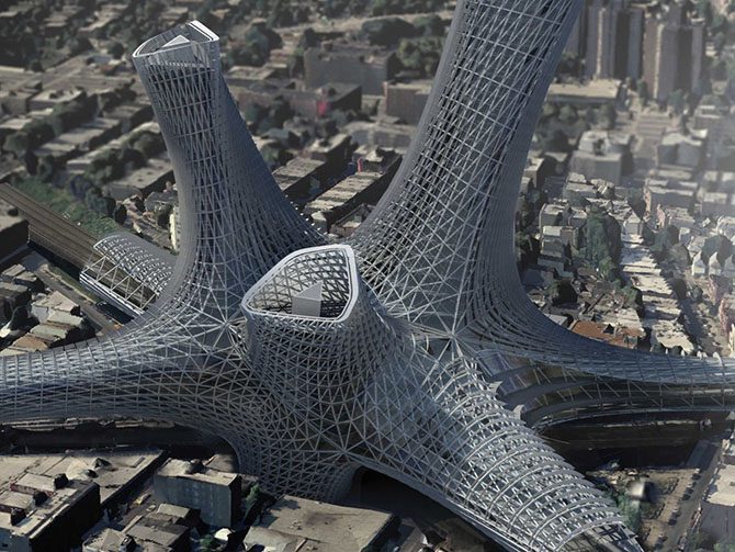 Вертикальная узловая станция для супер-скоростных поездов.