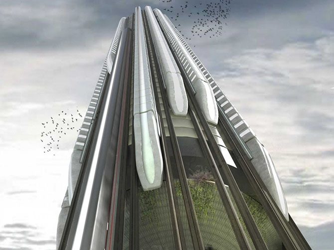 Этот небоскрёб устремился ввысь чтобы избавить летательные аппараты от углеводородной зависимости во время взлёта при помощи электромагнетизма.