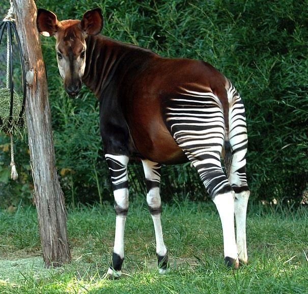Несмотря на то, что по телосложению и окрасу окапи больше напоминают лошадей, они относятся к семейству жирафовых.