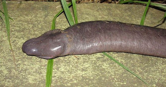 Водяное безногое земноводное Atretochoana eiselti из семейства водяных червяг.