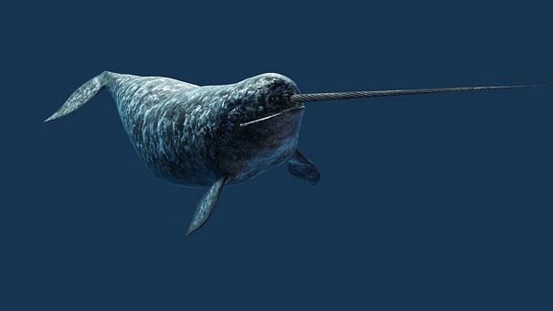 У нарвалов всего 2 верхних зуба. Левый развивается у самцов в бивень длиной до 3м.
