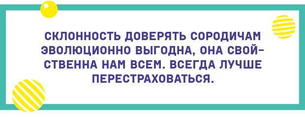 Если вам говорят, что эти красные ягоды ядовиты, и вы поверили, хотя на самом деле это не так, — ну, вы будете чуть менее сытым. Но вот если вам говорят, что эти красные ягоды ядовиты, и вы не поверили, а это была правда — вы будете чуть менее живым. Это значит, что вы не оставите потомства, то есть не передадите в будущее свои гены — и свою склонность сомневаться в словах старших и все перепроверять самому. Sad but true: критическое мышление не поддерживается естественным отбором.