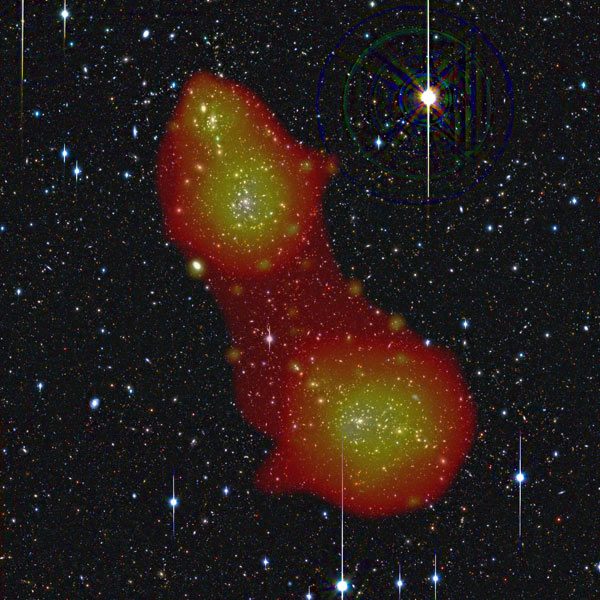Паутина, соединяющая галактики Abell 222 и Abell 223.