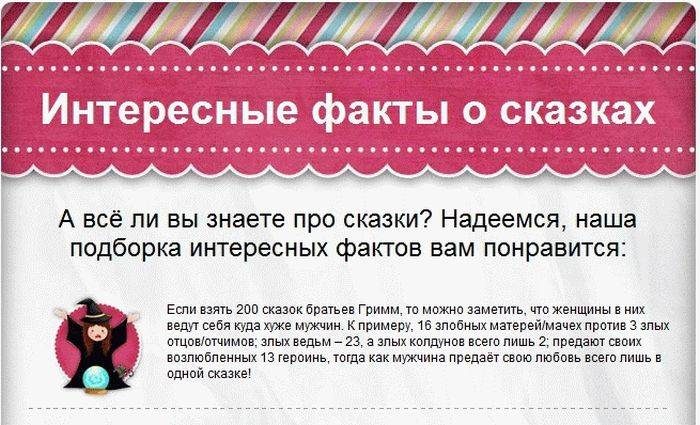Коллекция познавательной информации и интересных фактов о самых известных детских сказках.
