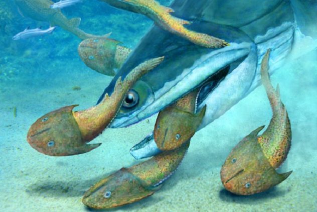 Новое исследование оспаривает такую картину силурийского периода благодаря изучению окаменелых костей вида Megamastax amblyodus, оказавшегося крупнейшей позвоночной рыбой того времени. Это существо вырастало примерно до 1 метра в длину и располагало челюстями размером в 10-13 сантиметров. Обнаружение этого вида приводит ученых к выводам, что крупная рыба появилась в процессе эволюции гораздо раньше, чем считалось до этого.