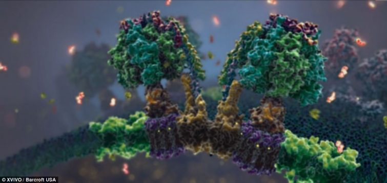 Изображение кинезина, белка, способного перемещаться по всей клетке. Он участвует во многих клеточных процессах начиная от деления клеток до предачи определенных веществ внутри клеток.