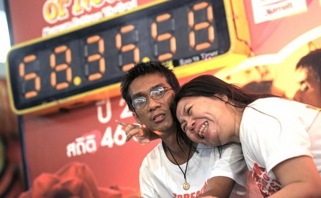Сегодня мировой рекорд за самый длинный поцелуй принадлежит Эккачай и Лаксане Тиранарат из Таиланда. Он был установлен в 2013 году на мероприятии «Ripley`s Believe It Or Not», когда пара целовалась в течение 58 часов, 35 минут и 58 секунд.
