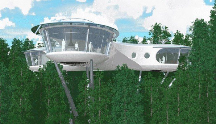 Архитекторы студии 10 Design Гонконга разработали проект футуристического антиураганного дома. Внешне это строение напоминает фюзеляж самолета или стартовую площадку космического корабля. Хотя самих авторов вдохновила вовсе не воздушная тематика, а растущие из земли цветы и черепахи, которые в момент опасности скрываются в панцире.