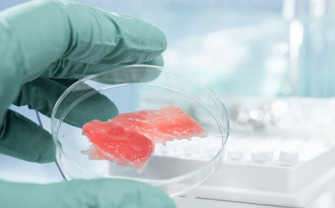 Вегетарианцы скоро смогут побаловать себя мясом неживотного происхождения. Сегодня оно стоит очень дорого. Его выращивают в лабораторных условиях всего из нескольких клеток животного. Впервые этот эксперимент был проведен голландскими учеными в 2013 году. Данная технология может помочь людям с мышечной патологией.