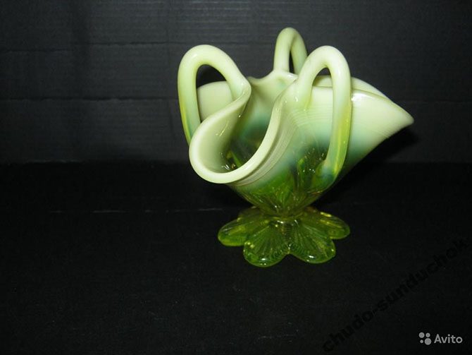 Вот как рассказывала о своей первой встрече с ним Людмила Марковна Гурченко: «Однажды в Эрмитаже, куда я ходила каждую субботу и воскресенье, когда снималась в Ленинграде, я увидела прозрачную зеленую вазу! Ярко светило солнце, на бюро из карельской березы стояла эта ваза удивительной красоты. Словами не передать! Потом я узнала, что это урановое стекло, которое уже в начале ХХ века в России перестали вырабатывать, потому что стеклодувы умирали от испарений урана. Я, еще учась в институте, начала ходить по комиссионным магазинам покупать вазочки. Сейчас у меня три окна – все в урановом стекле! Солнце, карельская береза, зеленая ваза и розовый цветок!»