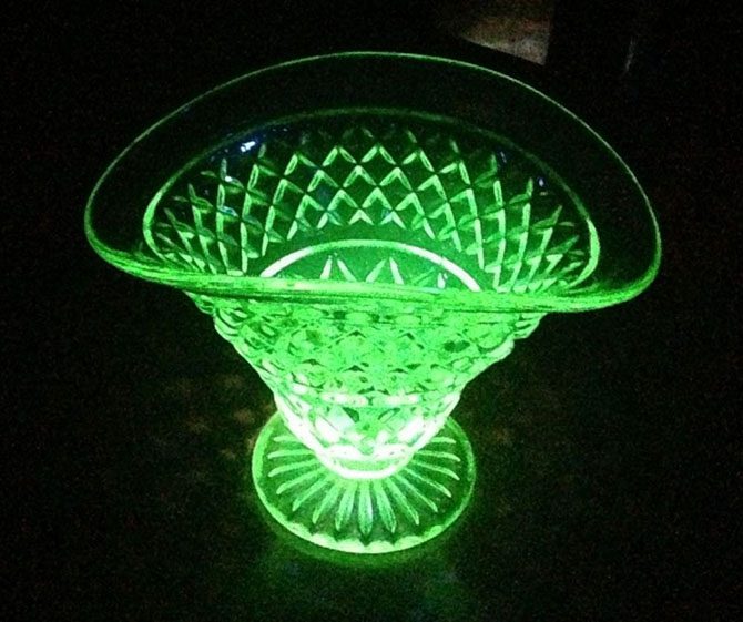 Все это происходит за счет добавки оксида урана в стекло перед плавкой. Его содержание в стекле колеблется от 0,3% до 4-6%, хотя некоторые предметы XIX века содержат даже до 25% урана. Интересно, что при повышенном содержании солей урана флюоресценция постепенно слабеет и совершенно пропадает при содержании урановых солей более 20% от общей массы стекла.