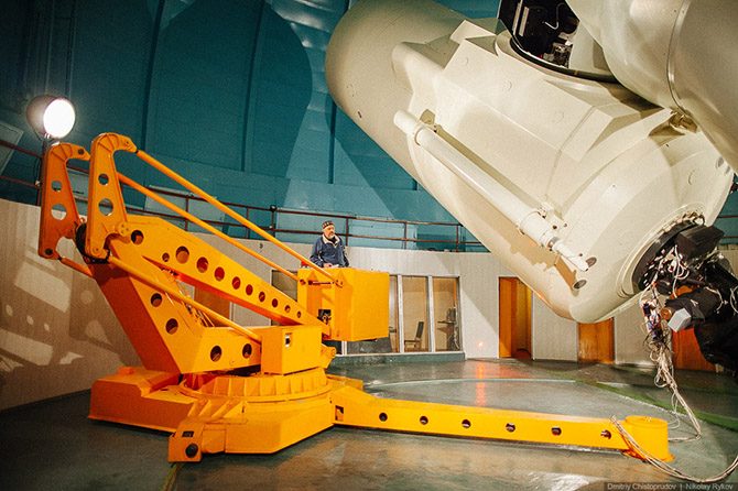 С туристами, кстати, у нас тут проблема: в первые 10 лет работы приходилось отбиваться от них. Да и сейчас тоже заходят. Дело в том, что в советское время здесь был почти народный альплагерь, т. е. заходи кто хочешь, можно переночевать или чуточку пожить бесплатно. И вот приходят сюда какие-то люди, мол, мы тут раньше отдыхали. А в 90-е, когда инфляция была жуткая, денег не платили, мы ездили их добывали, телескоп тут собирали — одним словом кутерьма была и совсем не до этого. И вот мы тут сидим на холоде под куполом, поем под Чиж и К «… холодно в кедах, но это фигня, ветер уносит последние деньги…», «козел» обдувает нас горячими струями воздуха, а мы собираем и паяем вот эту старую систему управления телескопом, полы вот эти делаем… И тут приходят люди, мол, мы тут будем у вас ночевать, пить, есть и т.д. Более того, экскурсоводы собирали внизу деньги и поднимали сюда группы людей, якобы на экскурсию в обсерваторию. Приходилось гонять. Но это, конечно, неприятно: ходить, гавкать, ругаться. Но с другой стороны, приходит кто-то в 11 часов, а у тебя рабочая ночь (где-то 14-16 часов) закончилась. Мы начинаем примерно в 4 вечера и заканчиваем в 9 утра. И вот, только ты лег спать, нужно поспать 3 часа и опять бежать, потому что у тебя что-то не ладится — а тут туристы приходят, нужно с ними гавкаться, портить настроение и… ну, одним словом, неправильно все это.