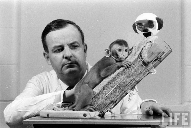 Американский психолог Гарри Харлоу (Harry Harlow) заработал своими опытами зловещую репутацию даже у коллег. Парадокс в том, что он тем самым добыл для науки данные, доказавшие необходимость более теплого отношения людей друг к другу. Это случилось в 50-е годы.