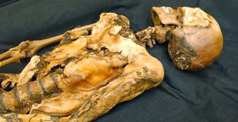 В 1993 году новосибирские археологи, исследовавшие курган Ак-Алаха на плоскогорье Укок, обнаружили мумию девушки примерно 25 лет. Тело лежало на боку, ноги согнуты. Хорошо сохранилась одежда усопшей: рубашка из китайского шелка, шерстяная юбка, шуба и чулки-сапоги из войлока. Внешний вид мумии свидетельствовал о своеобразной моде тех времен: на обритую наголо голову надет парик из конского волоса, руки и плечи покрыты многочисленными татуировками. В частности, на левом плече был изображен фантастический олень с клювом грифона и рогами козерога — сакральный алтайский символ.