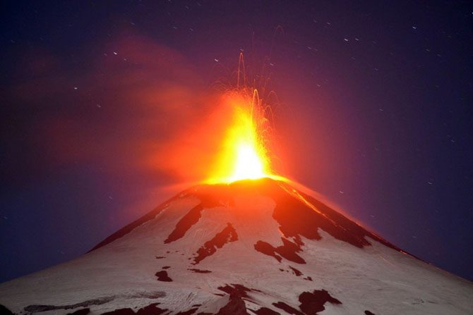 Впечатляющее зрелище — извержение вулкана Вильяррика в Чили.