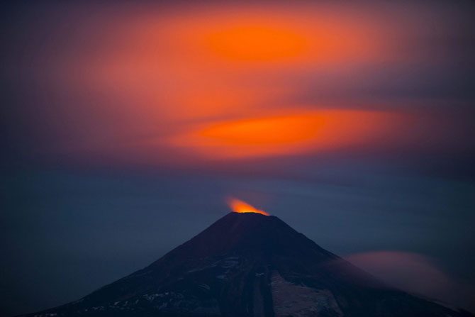 Озеро магмы вулкана Вильяррика в Чили с температурой около 1000 градусов Цельсия находится очень близко к поверхности. В любое время может произойти мощное извержение. Смотрите фантастически красивое извержение вулкана Вильяррика.