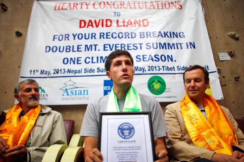 Мексиканский альпинист Дэвид Лиано Гонсалес стал первым человеком в мире, который взошел на гору Эверест, как с северной, так и с южной стороны на протяжении одного сезона. 11 мая Гонсалес взобрался на гору, высотой 8850 метров, со стороны Непала, а уже 19 мая — с тибетской стороны. Книга рекордов Гиннеса не могла не отметить такое достижение.