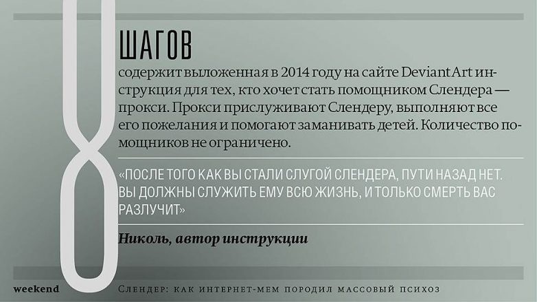 В России культ Слендера невелик — более или менее затрагивает подростков и интернет-гиков. В Америке о нем знают все. Это если не единственная, то точно самая значительная история о выходе мема за пределы своего бытования — из интернет-форумов и вирусных видео в «большую жизнь».