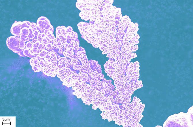 Российские физики выращивают изящные нано- и микроструктуры из металлов. Недавно физики представили работу, в которой изучался процесс роста наноштырей электрохимическим методом в пористых мембранах.