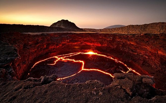 Лавовое озеро вулкана Эрта Але в Эфиопии.