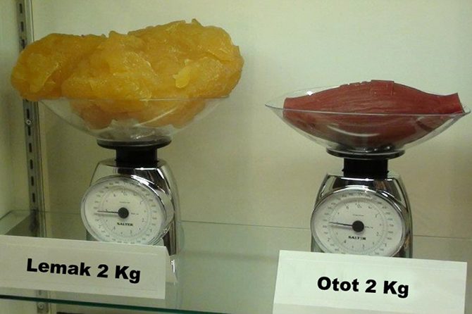 Так выглядят 2 килограмма жира против 2 килограммов мышц.