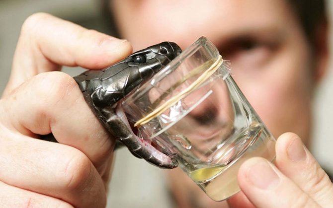 Многие за завтраком поливают овсяные хлопья молоком, поэтому профессия охотника за змеиным ядом может показаться им чем-то знакомым. Змеиный яд нередко смертельно опасен, но из него делают противоядие, которое также может использоваться при лечении ряда болезней. Охотники за змеиным ядом добывают его, держа змею за голову, пока она кусает кусок резины. Добывать яд можно и другим способом — пропуская через змеиный мозг электрический ток. Зарплата охотника за змеиным ядом составляет в среднем 2500 долларов в месяц.