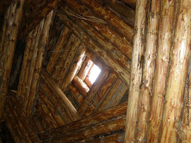 Сверху оставляли дымовое отверстие, под которым располагался очаг – как в юрте или яранге.