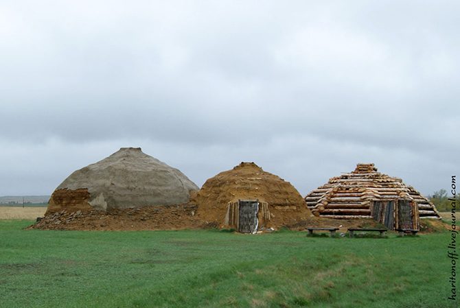 Эти домики – жилища людей ботайской культуры, существовавшей в районе Северного Казахстана более пяти с половиной тысяч лет назад. Вида эти люди были довольно европейского: смесь средиземноморского и уральского типов – нормальные уральские парни, только дикие: металла не знали, пользовались камнем да костью.