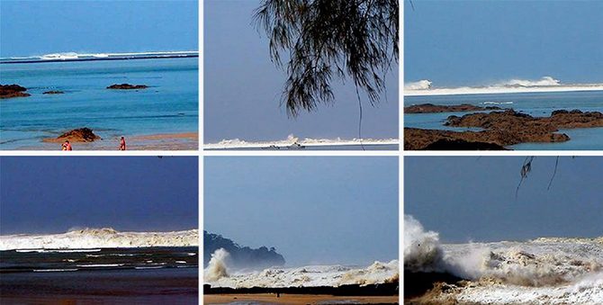 Супруги Книлл из Канады встречали Рождество в Таиланде, на курорте Као-Лак. Утром они вышли на пляж и стали фотографировать большую волну на горизонте.