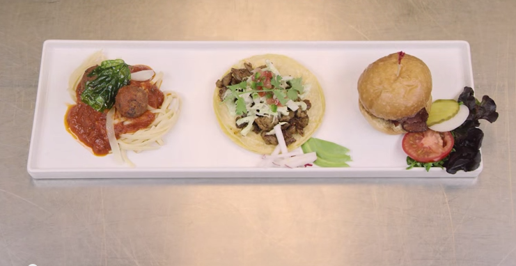 Тестовое меню включало в себя «гамбургер с беконом», «тако с курицей» и «пасту с мясными фрикадельками». Вот они.