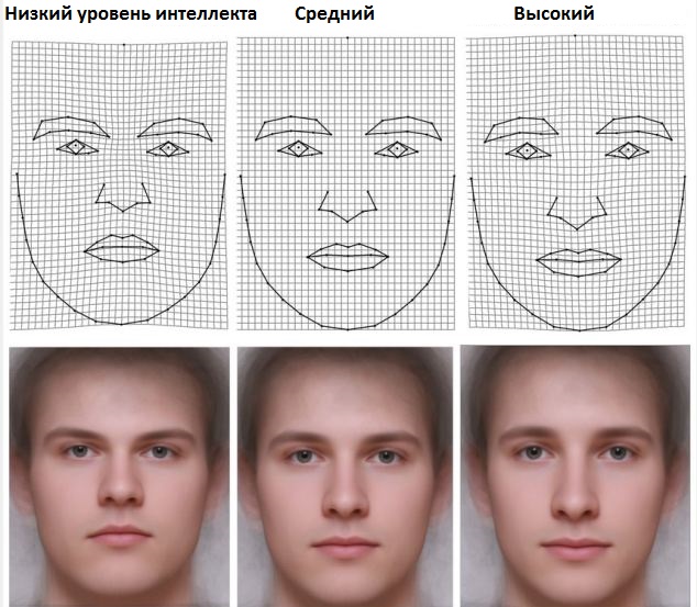 Ученые из Чехии выделили несколько черт лица, по которым можно судить об уровне интеллекта мужчин. Для умных, по мнению исследователей, характерны широко расставленные глаза, большой нос, слега приподнятые уголки губ и заостренный подбородок. При этом мужчины с более низким уровнем интеллекта обладают массивным подбородком, близко посаженными глазами, миниатюрным носом и округлым лицом.