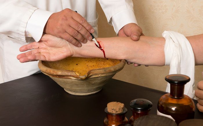 Кровопускание – это извлечение некоторого количества крови. Данная процедура была широко распространена в период Средневековья, как панацея для лечения любого рода заболеваний – от чумы до акне. Её проводили специально обученные парикмахеры-хирурги, а красная ленточка, прикрепленная на жилище брадобрея, свидетельствовала о его профессионализме в этом вопросе. В средние века при кровопускании могли либо поставить банки, либо надрезать артерию. К 19 веку появился специальный инструмент, скарификатор. Сегодня подобную процедуру проводят с целью лечения гемохроматоза, когда у человека в организме находится слишком много железа.