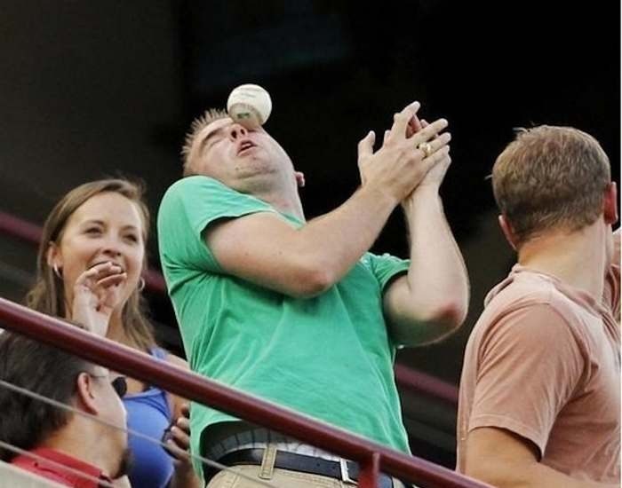 Этот парень поймал мяч любимой бейсбольной команды глазом.