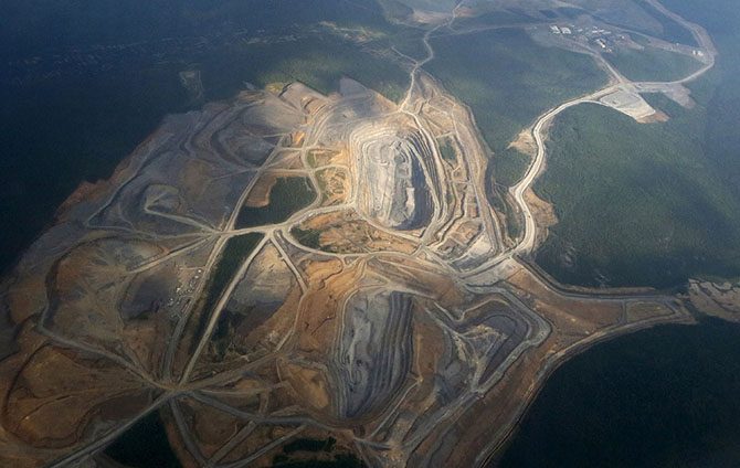 Вид на золоторудное месторождение Титимухта из окна самолета, 1 июля 2015.