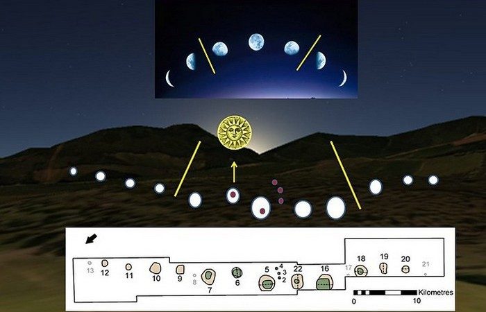 Он выглядит как 12 углублений, расположенных по дуге в 54 метра. Каждая лунка синхронизирована с лунным месяцем в календаре, причем с поправкой на лунную фазу.