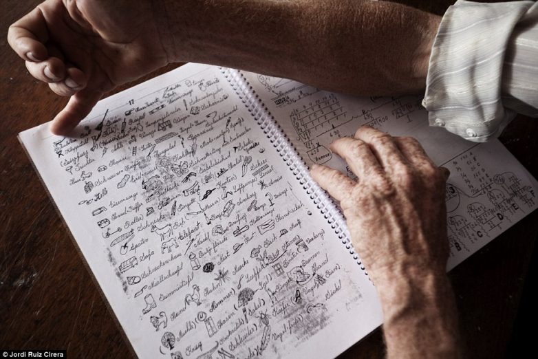 Читать и писать дети учатся здесь же, в общине. На фото – тетрадь с заданиями.