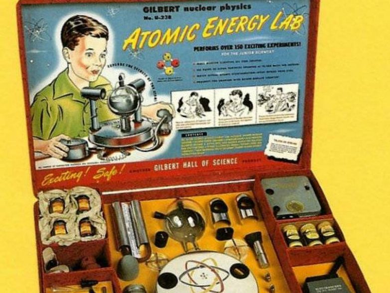 В 1951 году основатель компании по производству игрушек A.C.Gilbert Company Альфред Гилберт совместно с учеными из Массачусетского технологического института создал набор для юных физиков под названием The Gilbert U-238 Atomic Energy Lab. Набор включал в свой состав радиометрическую установку для регистрации излучения (индикатор излучений), спинтарископ для наблюдений за распадом атомов, образцы урана-238, электроскоп для измерения радиоактивности. Игрушка была опасна так как подвергала ребенка риску поражения радиацией. К тому же набор достаточно дорого стоил: 49,5$, что эквивалентно нынешним 300$.