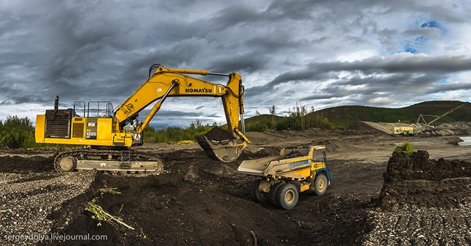 Итак, как же происходит добыча? Мы поговорим о добыче открытым способом. Есть ещё шахтный, но на Колыме его, как правило, не используют.