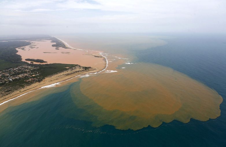 Вливание ядовитых отходов в Атлантический океан. Вид с воздуха, Бразилия, 23 ноября 2015.