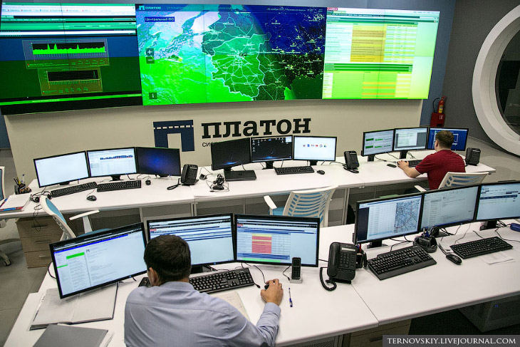 Сюда приходит информация с контрольных рамок на дорогах. Пока их всего 20 штук и установлены они только в московской и калужской области. Скоро их станет около 500 и они охватят всю страну.