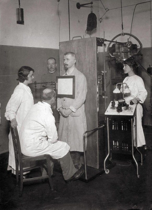 Демонстрация новейшего рентгеновского аппарата, Лондон, 1932.