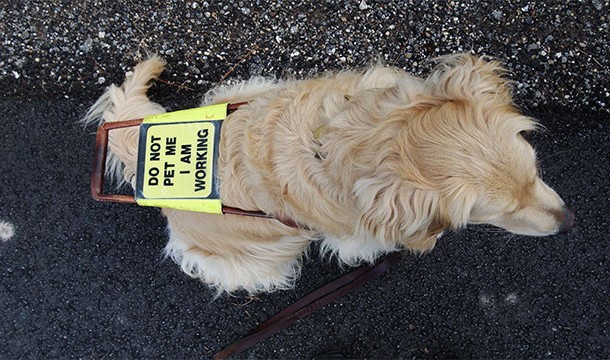 Собак-поводырей обучают ходить в туалет по команде. Таким образом хозяин может убрать за животным.
