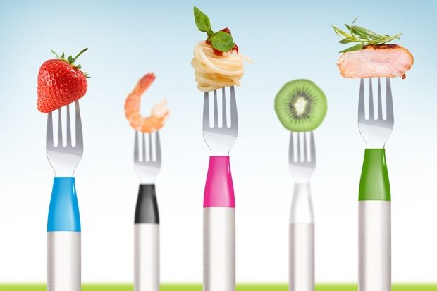 В 2013 году стартап HAPILABS представил свое «умное» изобретение — вилку HAPIfork. В основу ее работы создатели положили принцип размеренного приема пищи. Сигнал о сытости организм получает от мозга, которому на это требуется как минимум 20 минут. Поэтому употреблять пищу полезно именно в размеренном темпе. За этим и призвана следить вилка HAPIfork. Она измеряет скорость поглощения еды и, если темп становится слишком быстрым и превышает 10 секунд, сообщает об этом своему владельцу при помощи вибрации или светового индикатора. По Bluetooth вилка соединяется со смартфоном, на котором можно отслеживать и хранить статистику об интервалах между приемами пищи, времени и продолжительности трапез. На одном заряде вилка HAPIfork продержится до нескольких недель. Она не требует особого способа мытья: ее достаточно положить в посудомоечную машину или ополоснуть под струей воды. Стоимость гаджета составляет около 9 000 рублей.Пару вилке HAPIfork может составить тарелка-контролер от шведской компании NHS. Она также следит за скоростью приема пищи, а также за количеством съеденного. В случае превышения допустимой порции тарелка сделает предупреждение и предложит прекратить трапезу.
