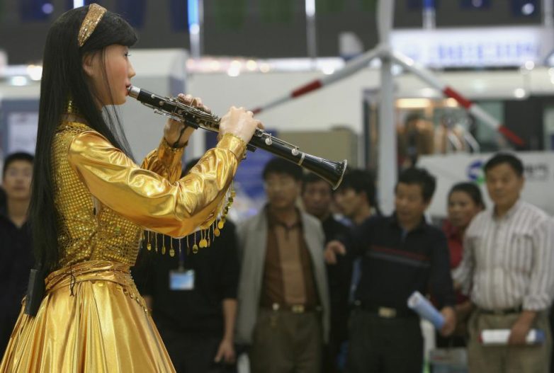 Робот играет на кларнете в Шанхае, Китай, 2 ноября 2006 года.