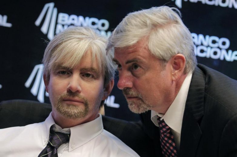 Датский учёный Хенрик Шарфе (справа) позирует со своим роботом Geminoid-DK, который внешне практически неотличим от него самого, во время презентации на Всемирной олимпиаде роботов в Сан-Хосе, Коста-Рика, 16 августа 2013 года.
