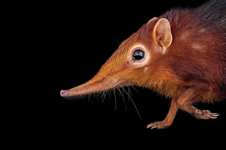 Рыжеплечая хоботковая собачка. Характерным признаком вида является длинная, подобная хоботу морда.