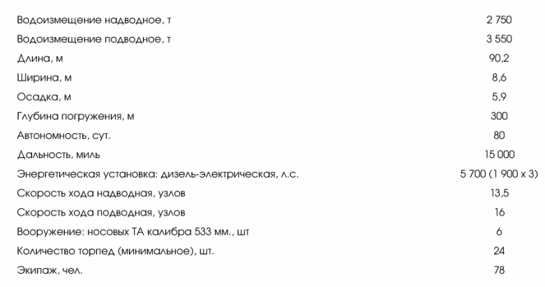 Тактико-технические данные подводной локи проекта 641Б