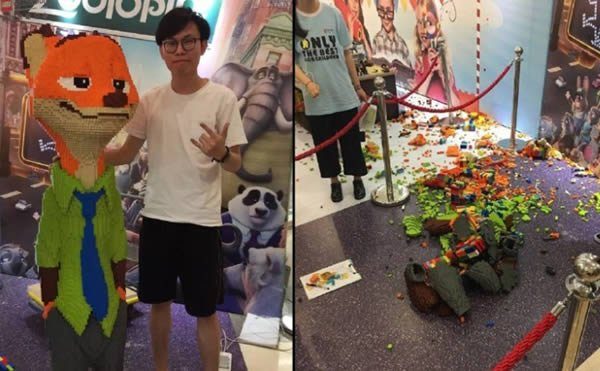 Смотреть и не иметь возможности потрогать было слишком суровым испытанием для 4-5-летнего мальчика, пришедшего на выставку LEGO в городе Нинбо (Ningbo) в южной части Китая. В первый же час проведения выставки малыш опрокинул скульптуру из LEGO с человеческий рост, разлетевшуюся на тысячи кирпичиков.